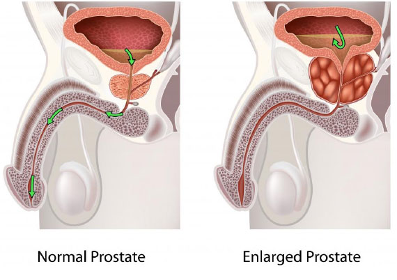 The prostate is a gland that sits at the exit of the bladder. In a young man it is 15-25 cc in volume. Imagine it as a ring donut, with urine passing through the donut hole in the centre. As one grows older, the donut often enlarges, and the hole at the centre closes off, obstructing the flow of urine. This happens most commonly due to a benign process where abnormal tissue growth expands from the centre part of the prostate, replacing the normal central tissue, and compressing the normal glandular tissue at the edge of the prostate gland. This is termed BPH- Benign Prostate Hyperplasia.